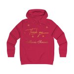 Ladies version of the popular JH001 hoodie. This College Hoodie has a feminine fit and features a double fabric hood, Kangaroo pouch pocket with a small hidden opening for headphone cord feed, ribbed cuffs and hem, self-colored drawstring cords and twin needle stitch detailing.