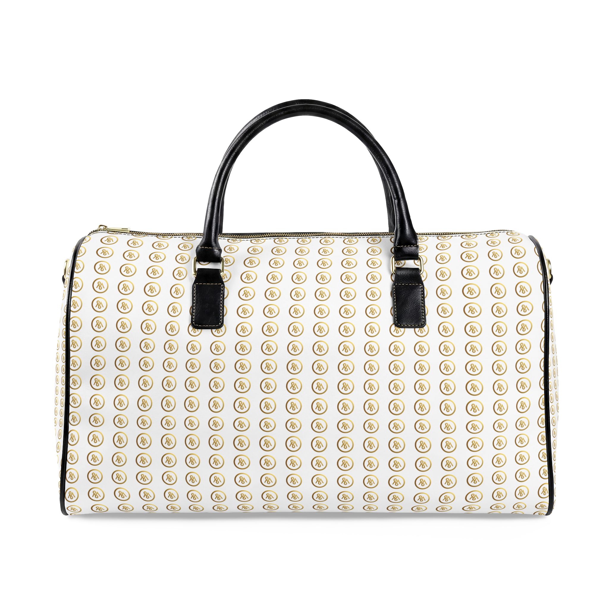 A compact travel companion with a quietly bold attitude. This structured PU leather bag pairs a clean white body with repeating gold-tone studs for a look that reads polished and playful. The roomy single compartment carries essentials without fussy pockets, while a padded top handle and adjustable shoulder strap let you switch between handheld and crossbody wear. It slips easily into weekend plans, commuter routines, or runway-adjacent errands — made for the person who travels light but likes to arrive noticed.